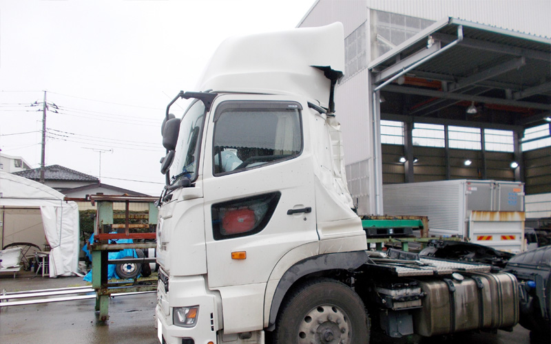 全国大型自動車整備工場経営協議会の工数委員長として、トラックの事故車の工数の検証と算出に協力しています。JIS規格に基づき検証作業が出来るように、弊社として、車両の提供と映像の提供など協力しています。