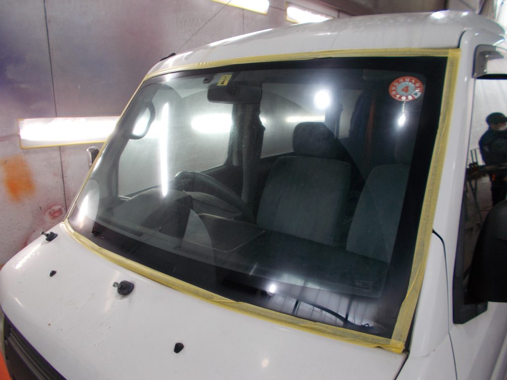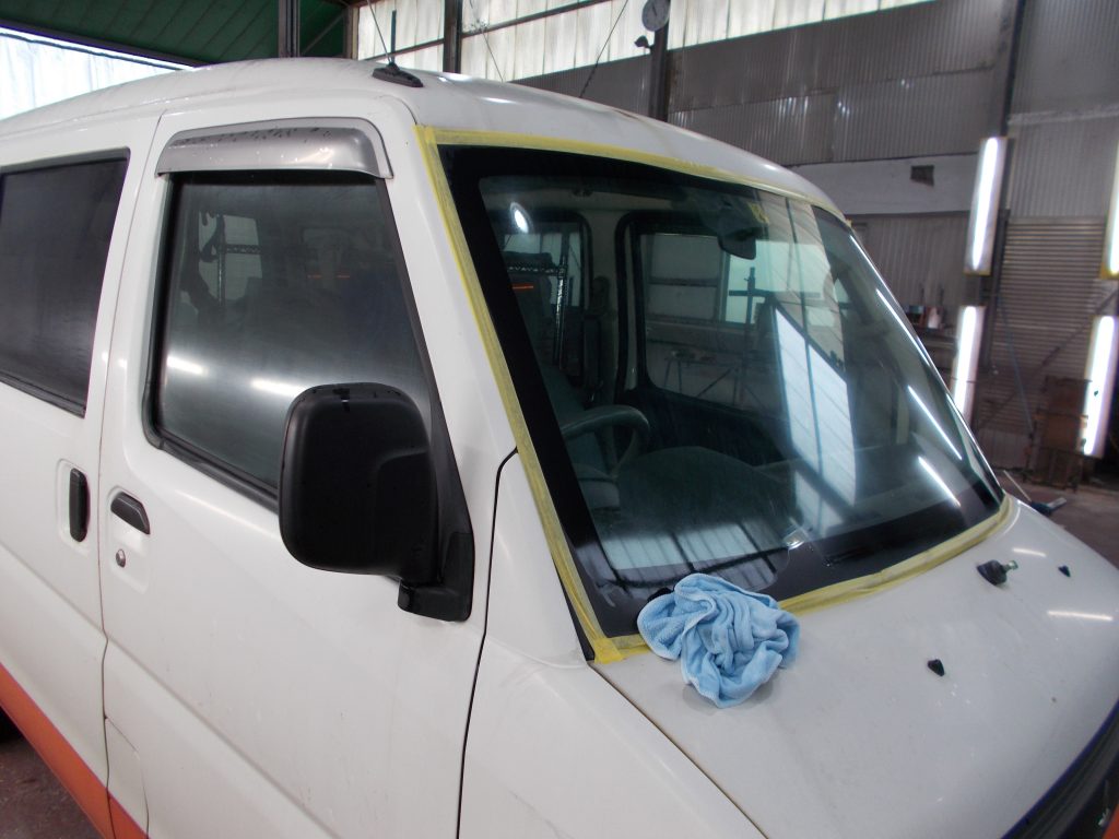 現在の作業は、フロントガラスのウェザーストリップ付近の細かい水垢を