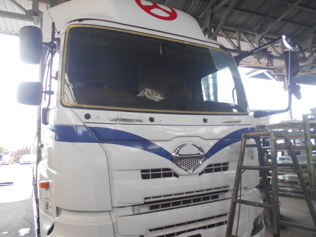 プロフィアにフロントガラスコーティングの施工を行いました。