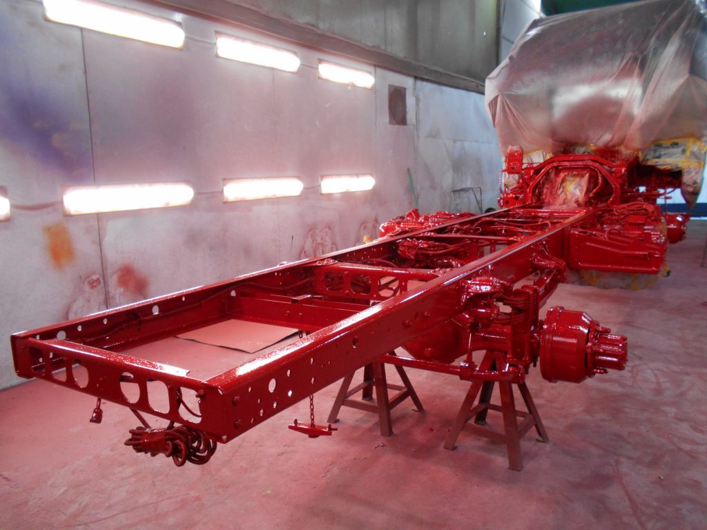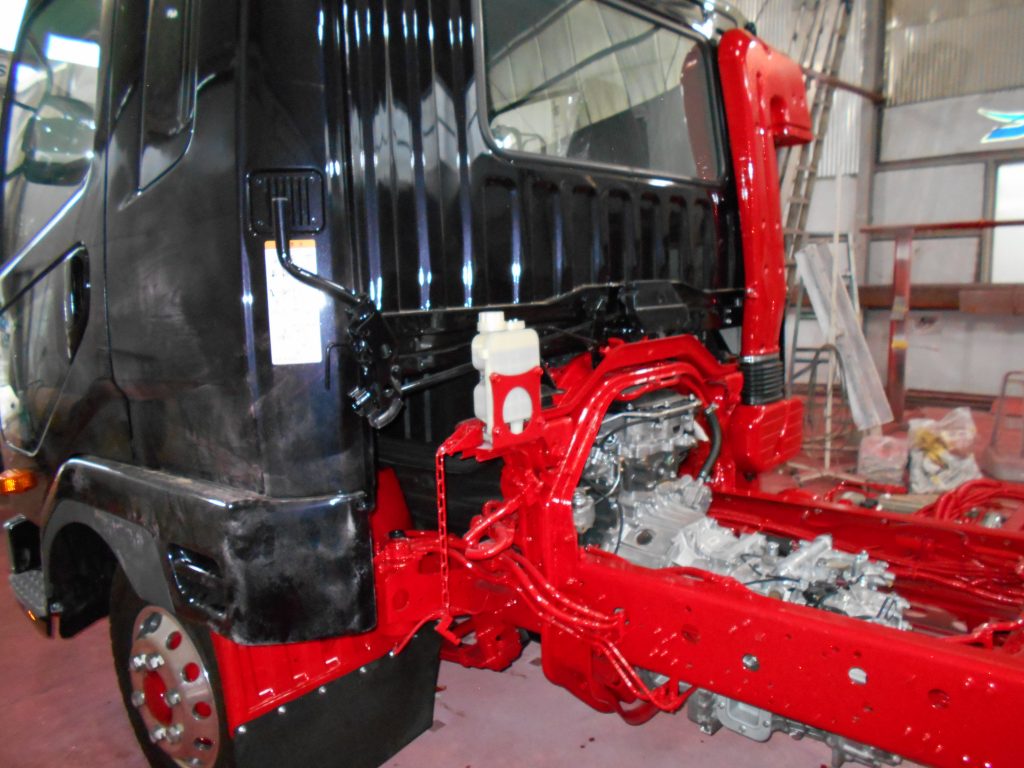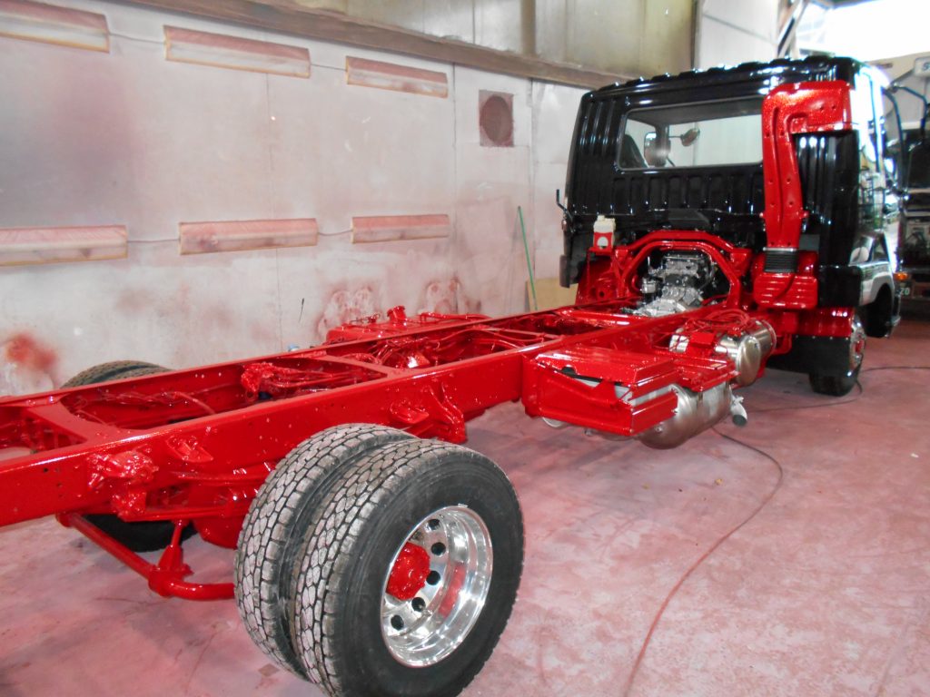 施工個所 ファイターFK62のシャシに家畜運搬車の製作過程。下回り塗装