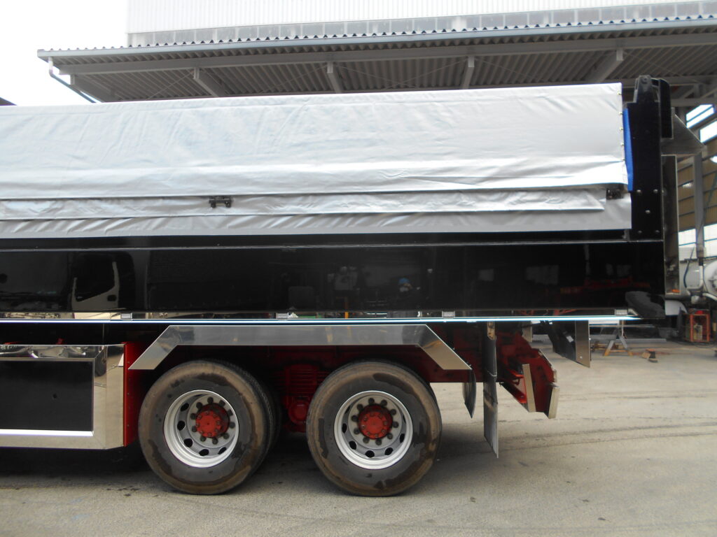 施工個所 大型ダンプトラックの事故修理で荷台のサイド部分を板金塗装しました。型式はQKG-FV50