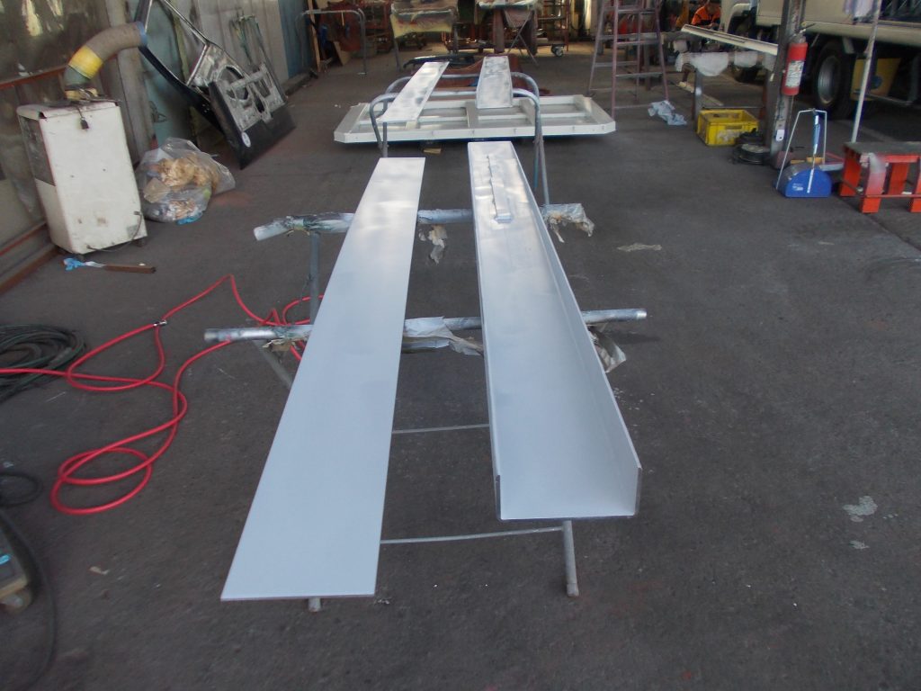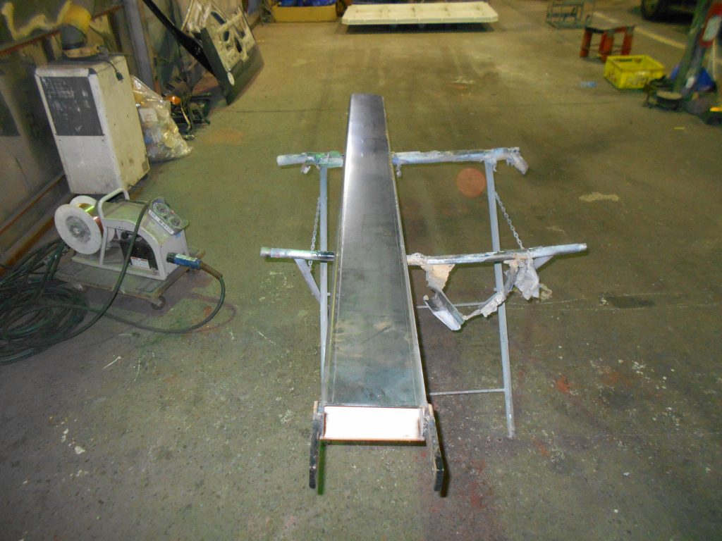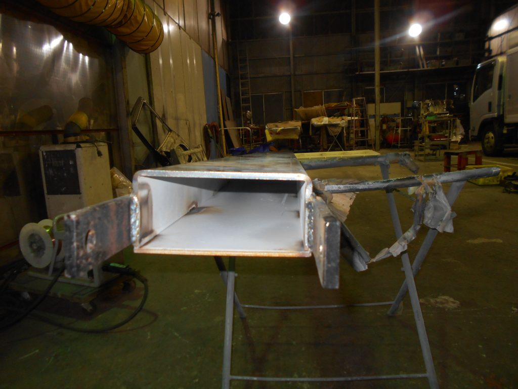 内側の補強をした後に、防錆塗料を施工しました。蓋をしてしまうので見えなくなってしまう部分ですが、防錆塗装をすることで、見えない部分からの腐食を防止する事と長期間使用できるように塗装をしました。