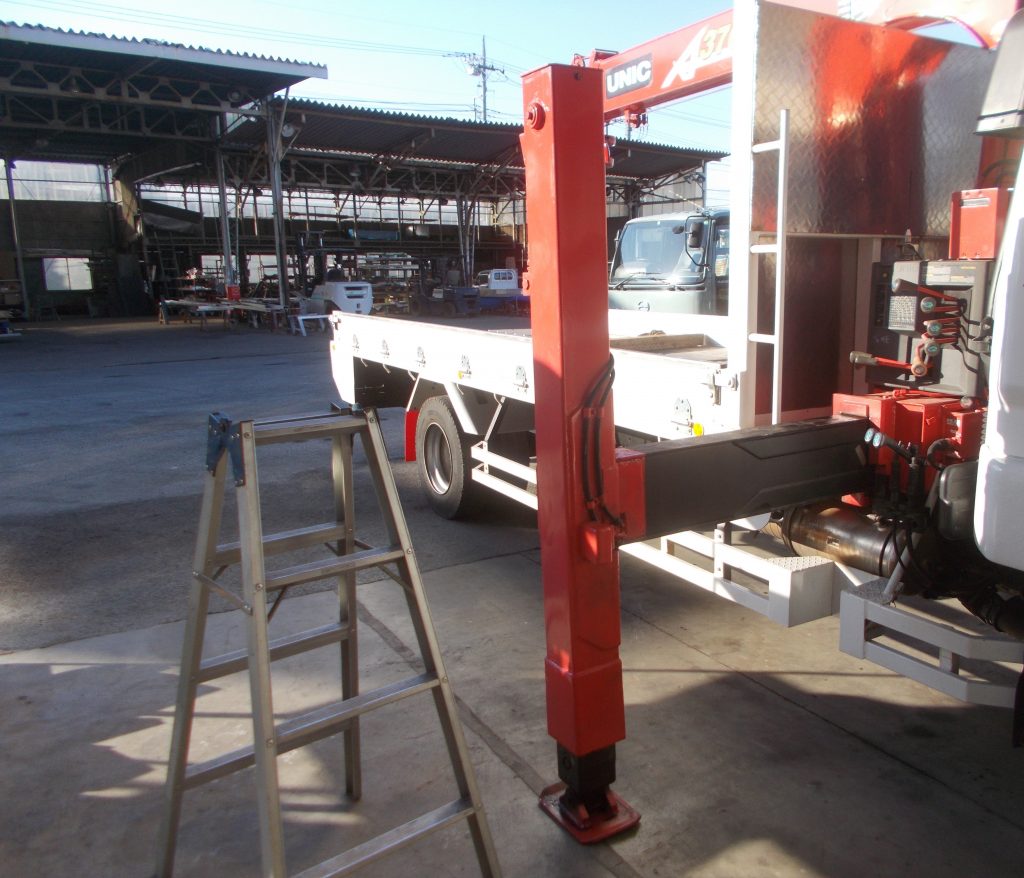 三菱ファイターのUNIC(ユニック)ハイアウトリガーの入庫でした。