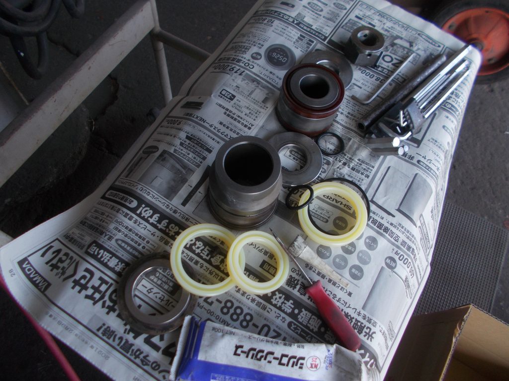 油圧ホースを外して、シリンダーをジャッキ内部より取り外しました。