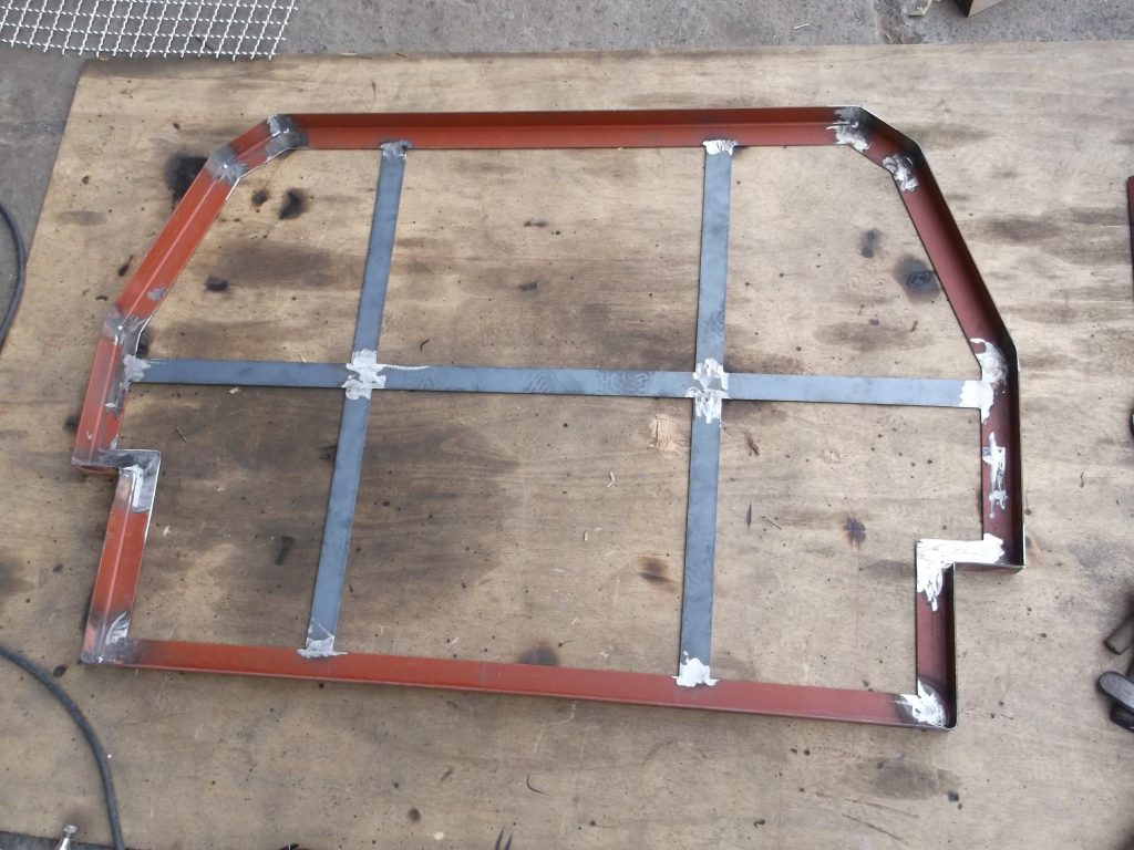 製作した隔壁枠に、ステンレス製のクリンプ目金網を溶接で取り付けしました。