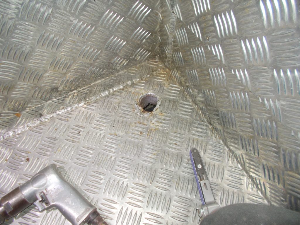 施工個所 家畜運搬車の水抜きの腐食修理とウィンチフック取付です。