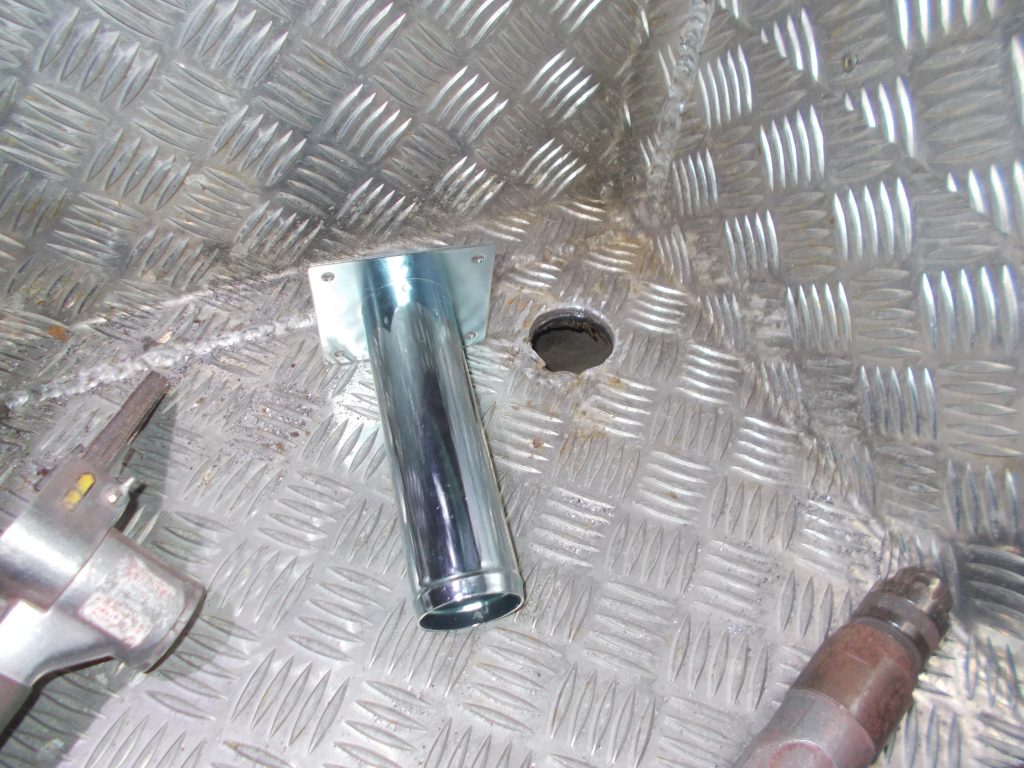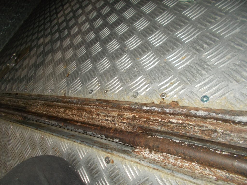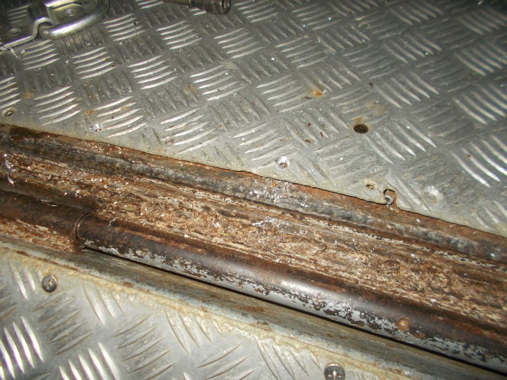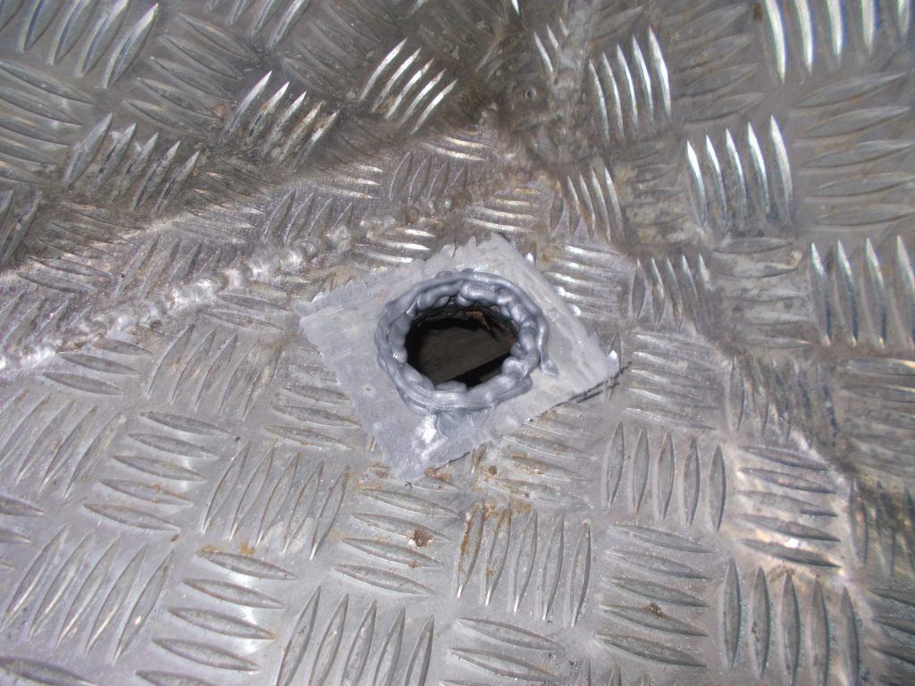 乗り降りする部分で腐食が激しかったので、骨格がある部分にリベットで止めることにしました。