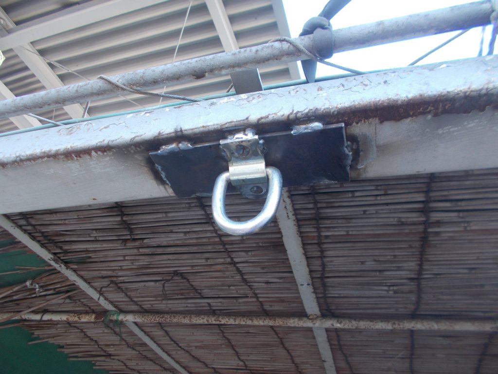家畜運搬車の門構の上部にフックを6mmの鉄板に溶接したものを、門構に溶接取付いたしました。