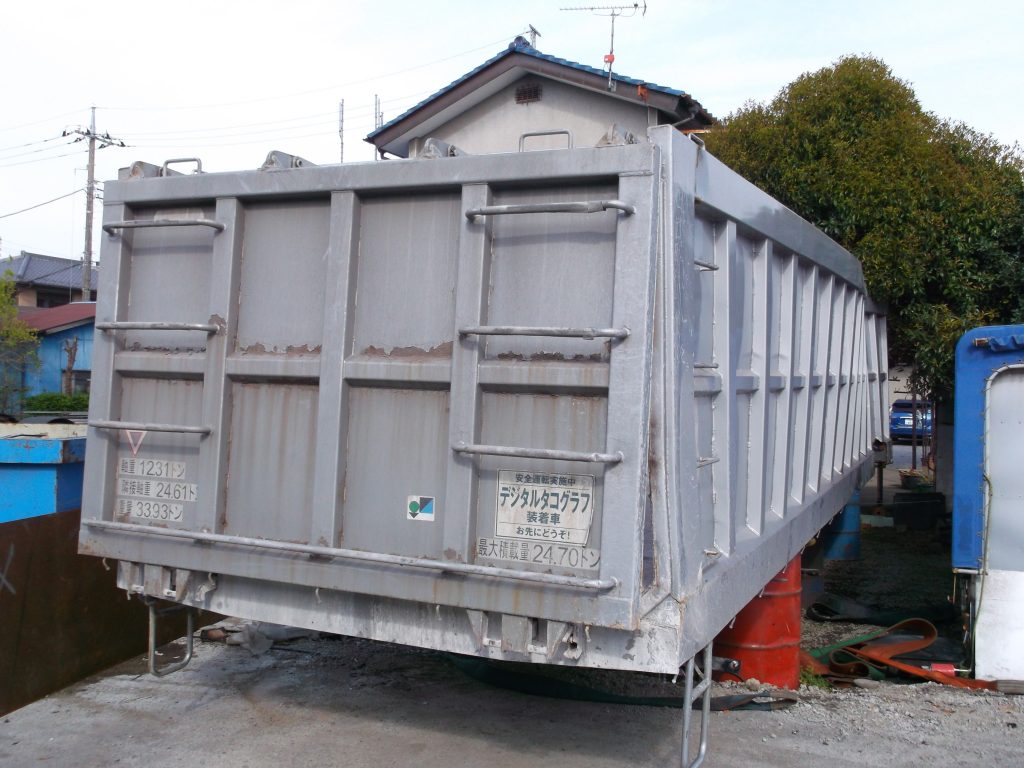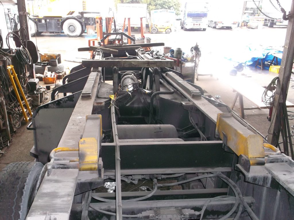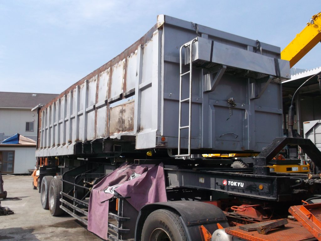 トレーラーダンプのダンプ部分を取り外したところです。フレームを修正するために取り外ししました。