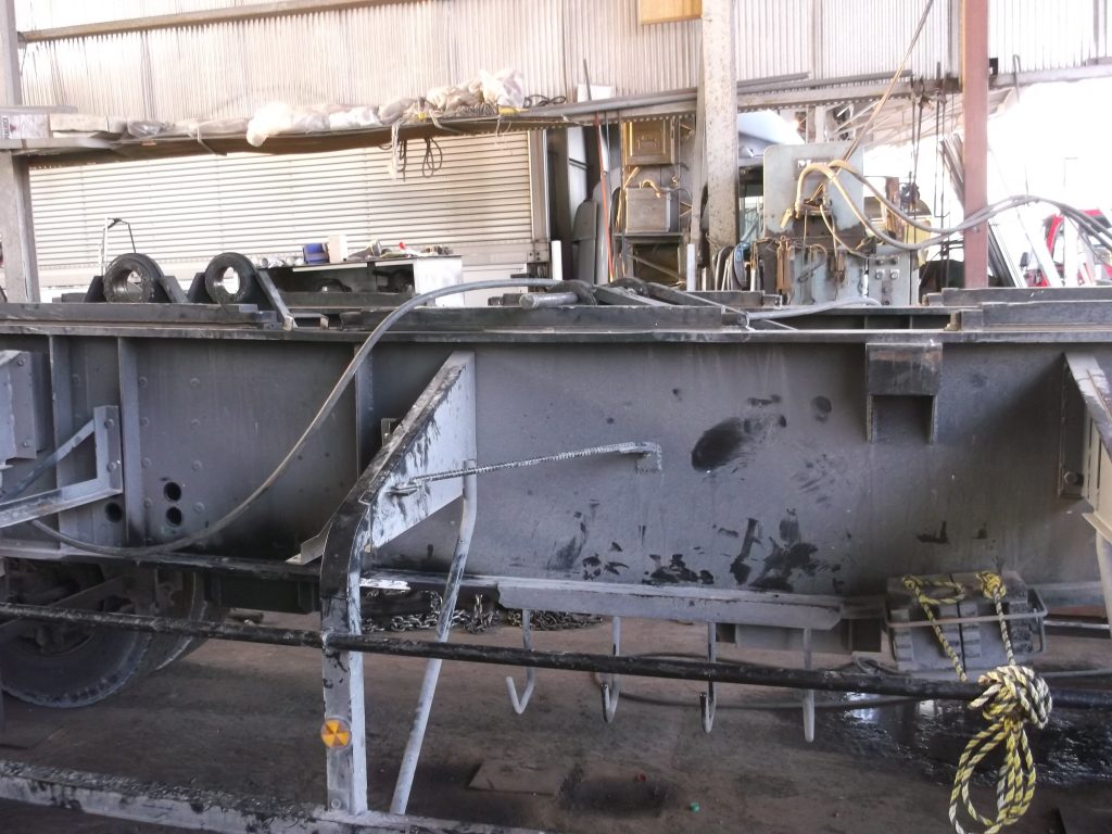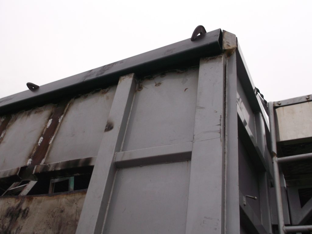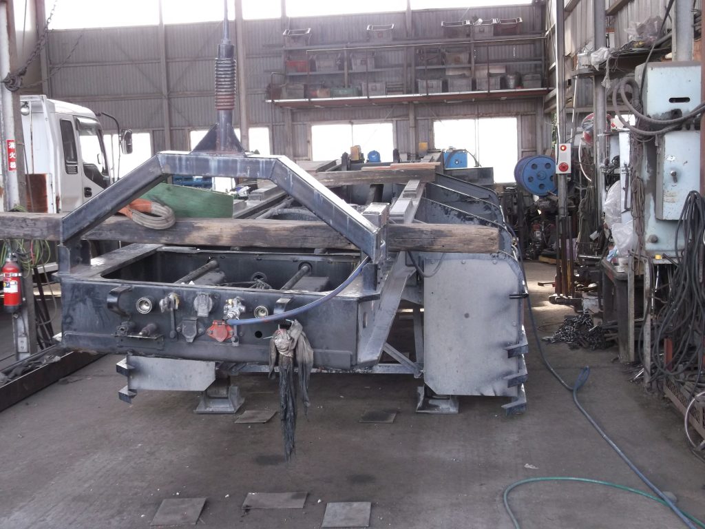 破損部分の撤去が終了して、トレーラーダンプのベッセル部分の修正を行うにあたり、フレームに積載して修正していきました。