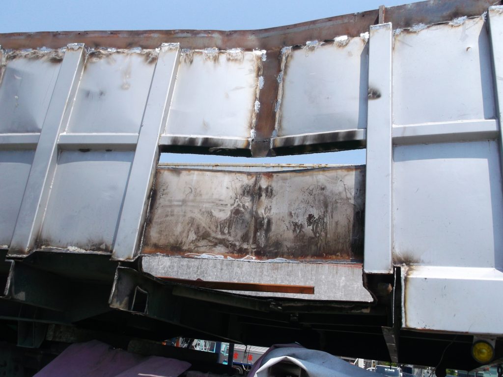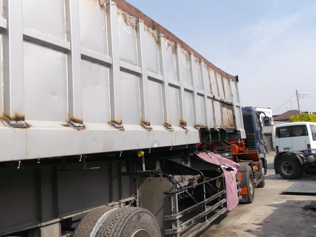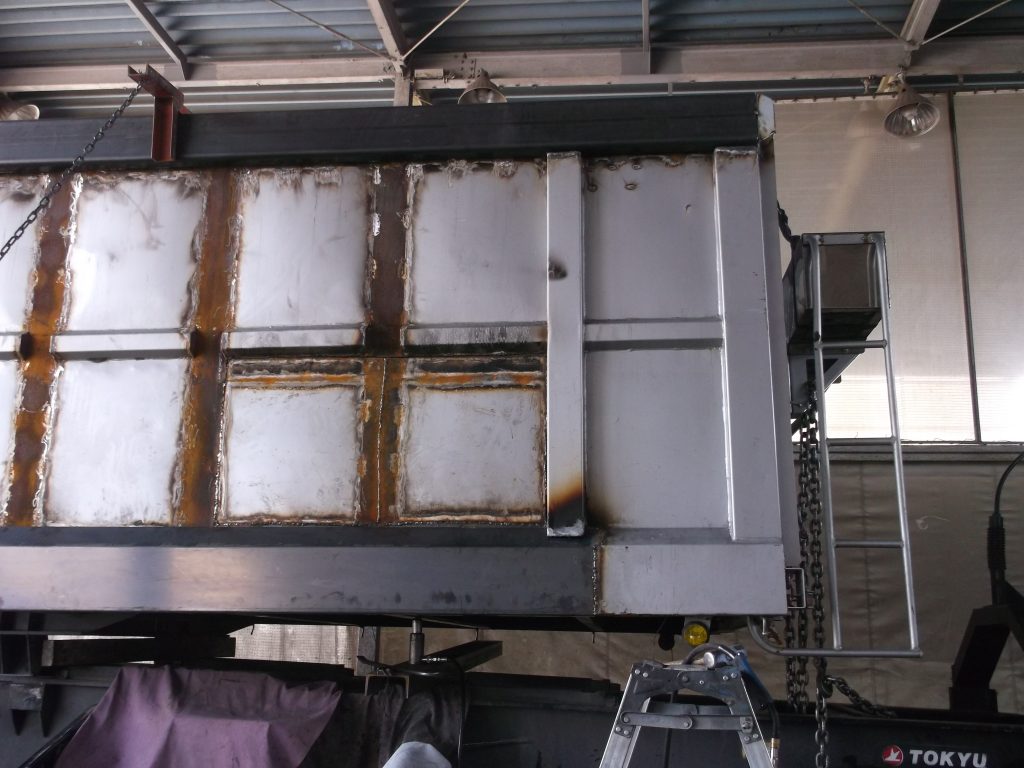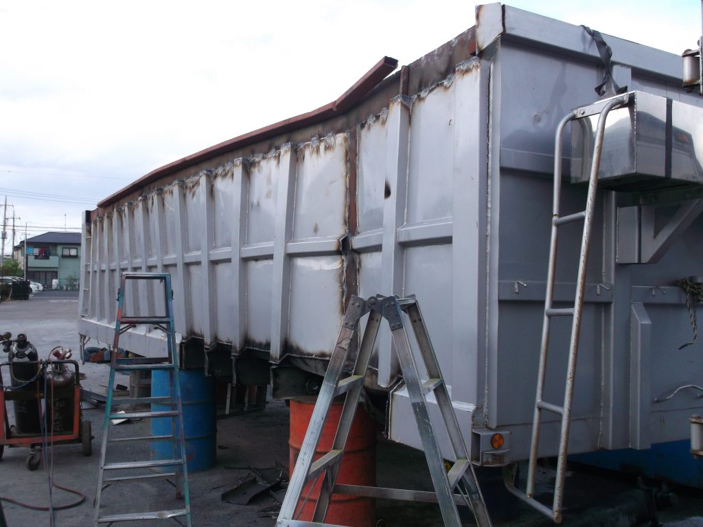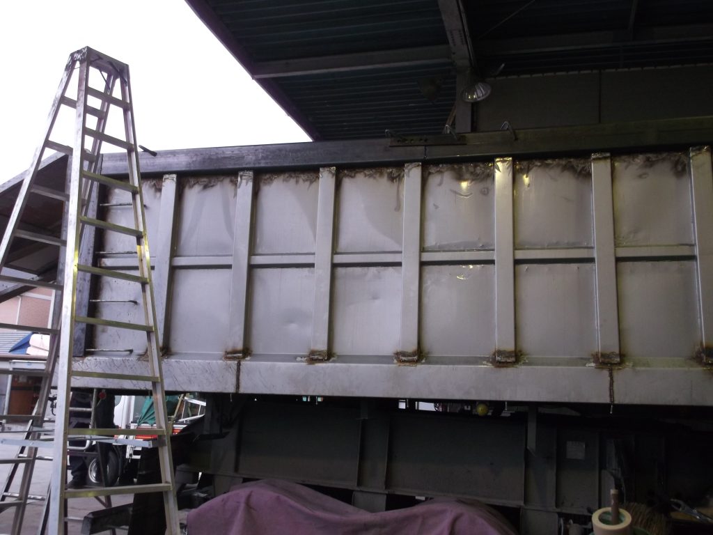 施工個所 トレーラーダンプの事故修理。フレームからベッセルダンプ部分の修理です。