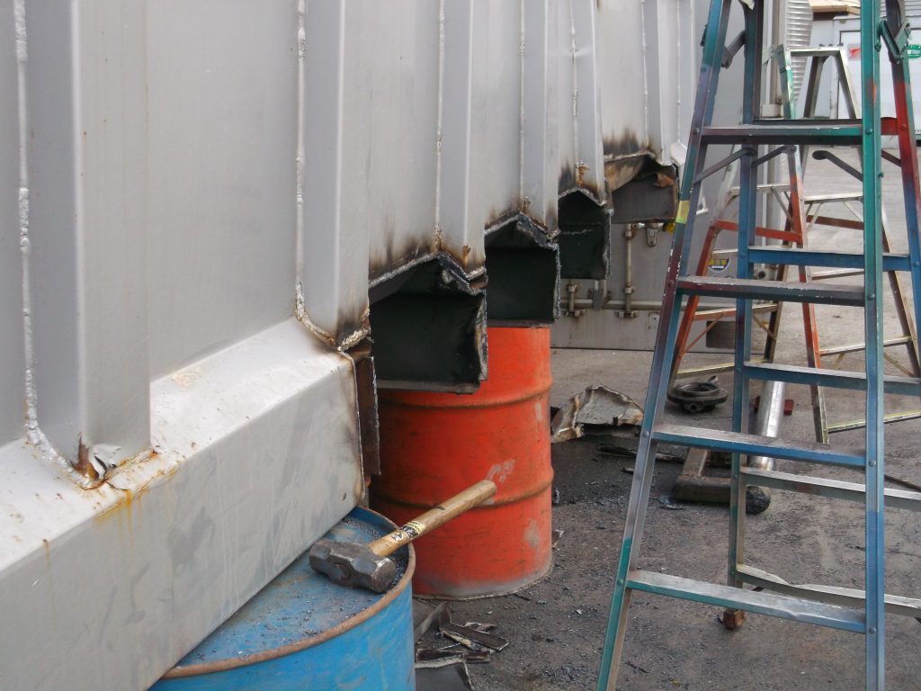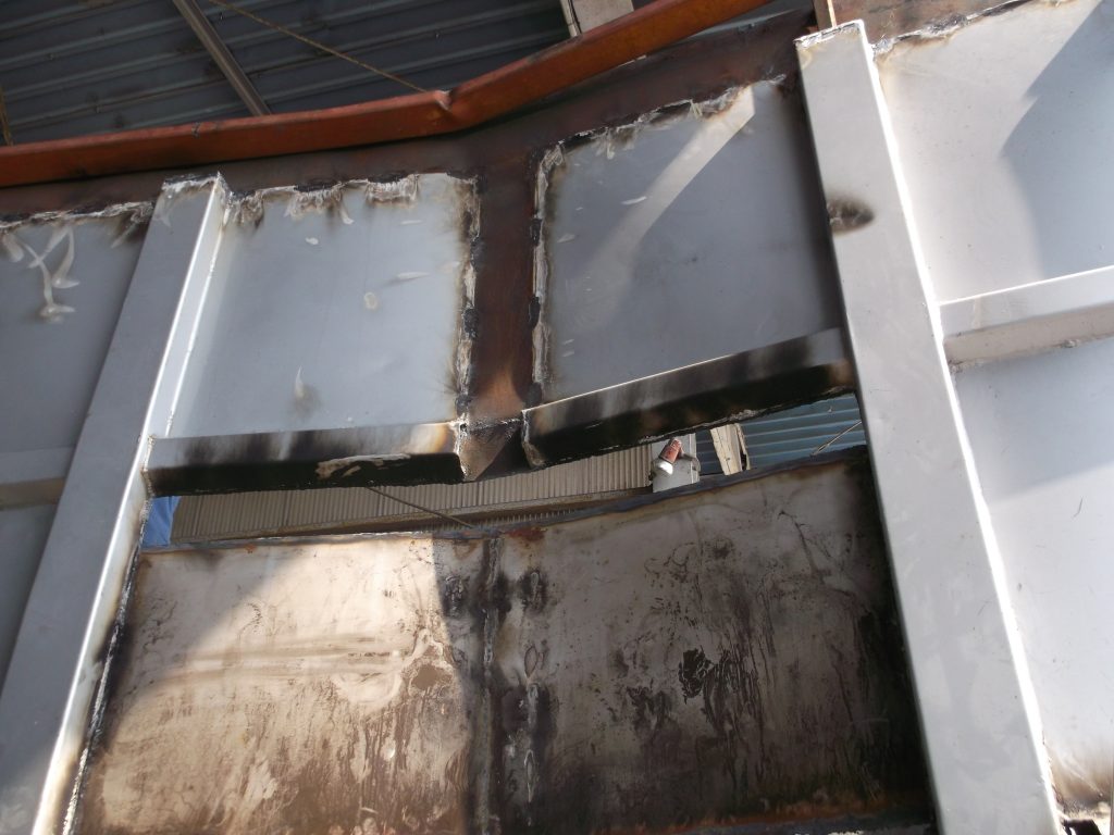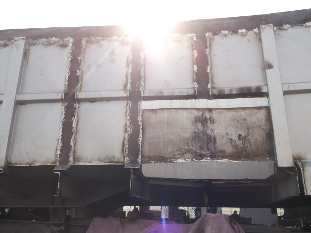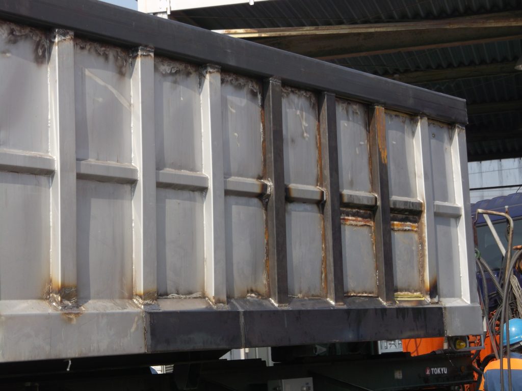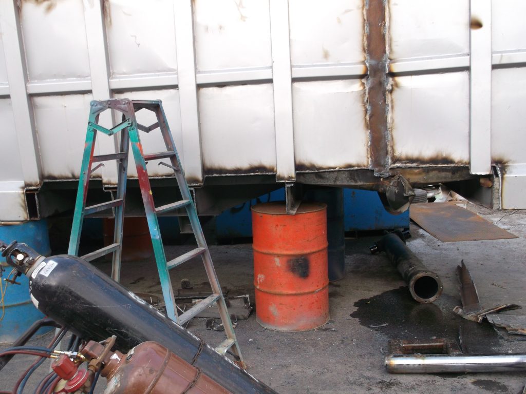 施工個所 トレーラーダンプの事故修理。フレームからベッセルダンプ部分の修理です。