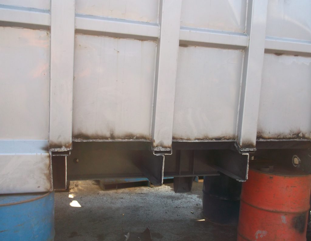 トレーラーダンプの下側のメンバーはこのように大きく曲がっていました。