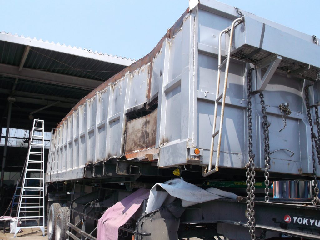 トレーラーダンプの事故車の修理です。TOKYU車輌のトレーラーダンプで今は、東邦車輛TOHO車両です。